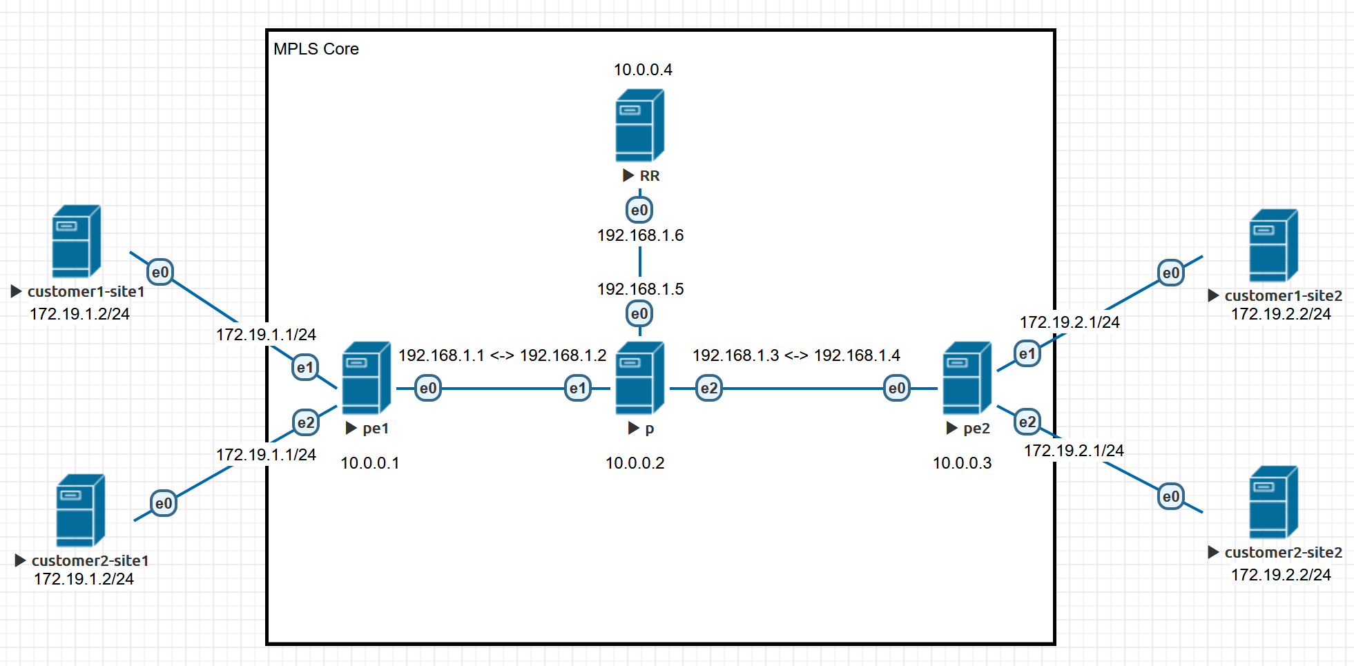 Linux终于获得了能用的原生的MPLS(L3VPN)和VRF支持。不过三年以后,MPLS配置的完整文档尚付阙如。近日我经过研究和阅读各种零散的资料,成功在测试环境中配置了一个标准的MPLS核心网络架构,因此写一篇文章来分享配置过程以及路上遇到的各种坑。